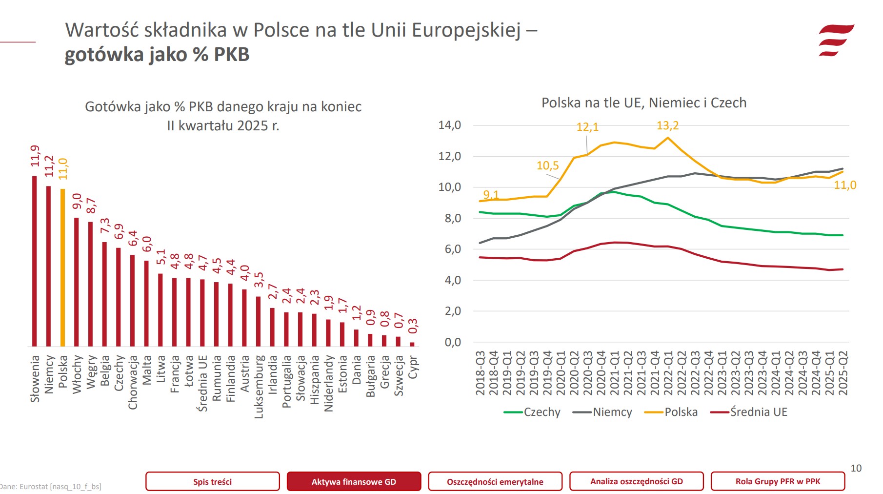 Jesteśmy w czołówce państw gotówkowych, ustępując miejsca na podium jedynie Słowenii i Niemcom. To sugeruje, że spora część naszych oszczędności wciąż ląduje w przysłowiowej "skarpecie", zamiast pracować na rynkach kapitałowych.